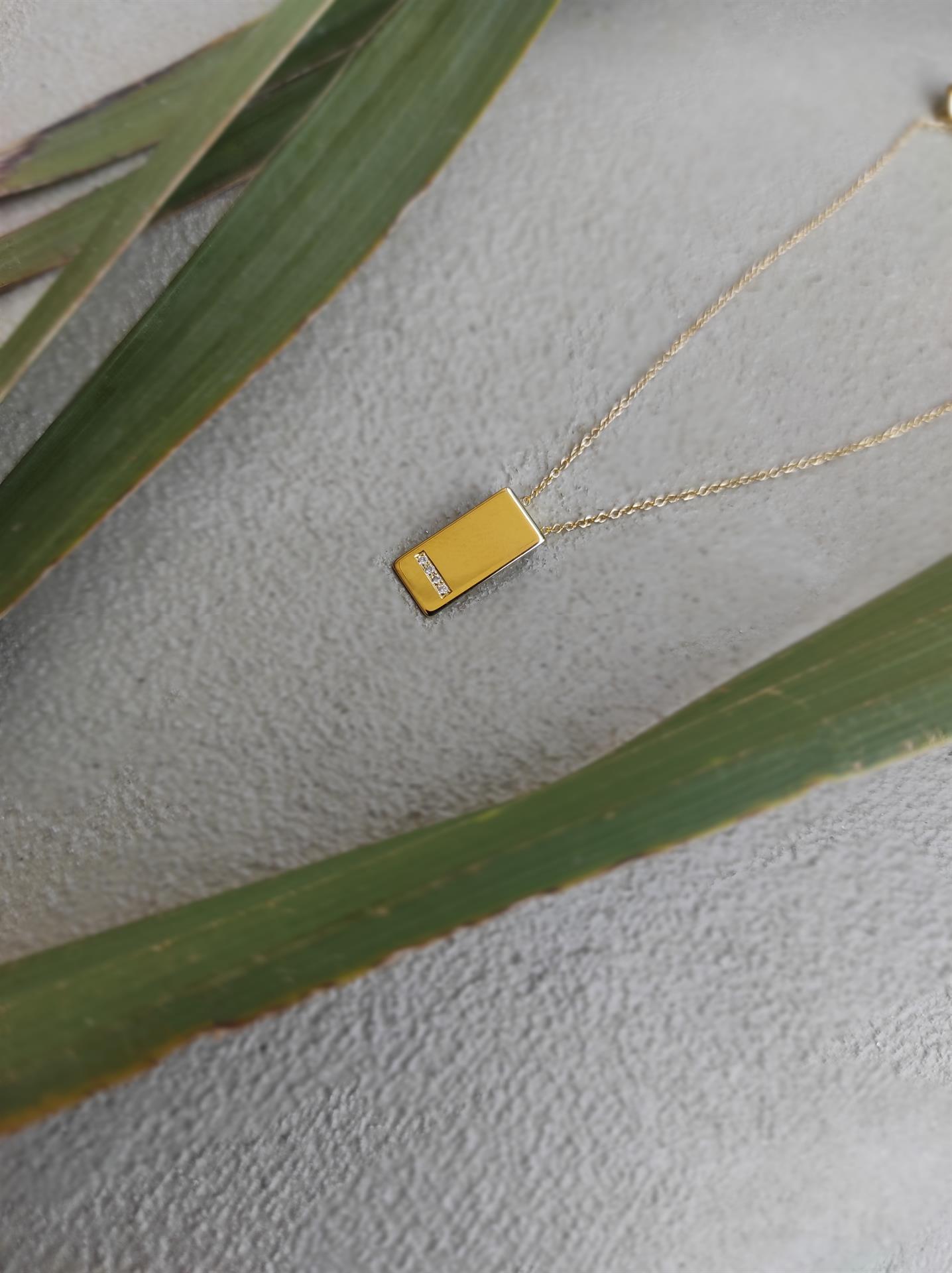 Λευκόχρυσο Κολιέ με Τετράγωνες Ροζέτες με Πέτρες Κ14