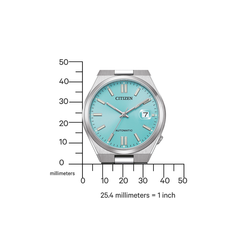 he "Tsuyosa" NJ0151-88M Automatic from the NJ015 series brings cutting-edge sporty design directly to your wrist. The 40mm multifunctional watch stands out for its elegant design, featuring a silver-toned stainless steel case and a smooth, integrated bracelet in the same style. Under the anti-reflective sapphire crystal, the sport watch showcases a light blue dial with sunburst patterns, a date window at the 3 o'clock position, and silver details that enhance its classic aesthetic. Powered by an automatic movement, it offers water resistance up to 50 meters, making it ideal for daily use — at work, during leisure time, and on any other occasion. Movement: Caliber 8210.
