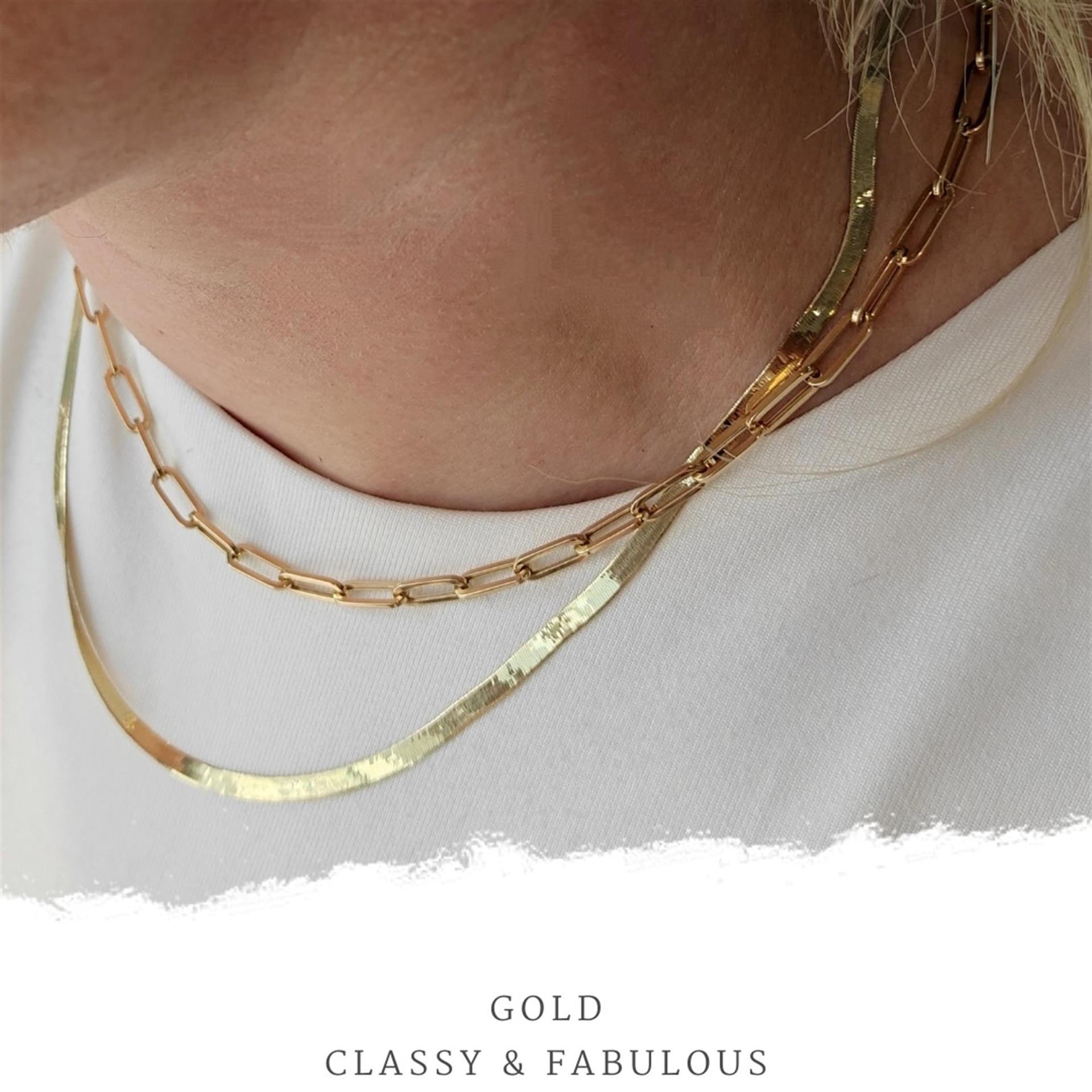 Χρυσό Κολιέ Κ14 με Ματ & Λουστρέ Στοιχεία Κ14