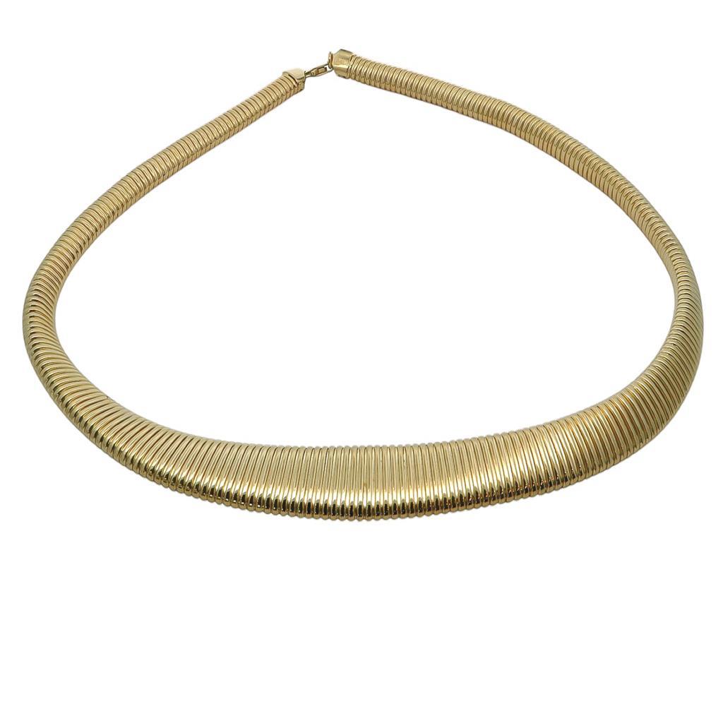 Κολιέ κατασκευασμένο από κίτρινο χρυσό 14 καρατίων. Η αλυσίδα αυτή είναι φαρδιά, ντεγκραντέ, στρογγυλεμένη εύκαμπτη, με συμπαγή, ενιαία πλέξη και αγκαλιάζει υπέροχα το λαιμό. Υπέροχο κόσμημα για τον λαιμό σας. Ιδανικά συνδύασε το με το ίδιο βραχιόλι.
