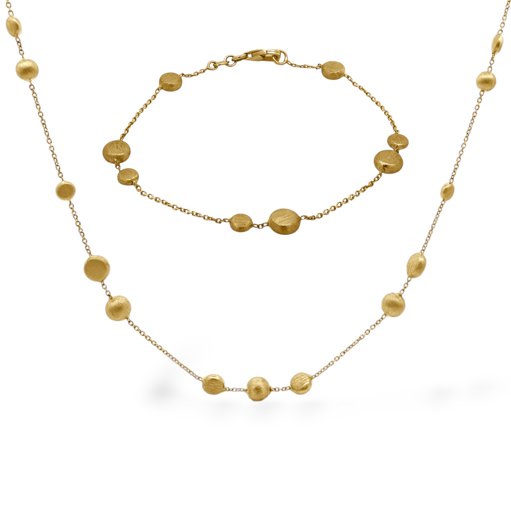 Κολιέ από χρυσό14 καρατίων με χρυσά ματ στρογγυλά πλακέ στοιχεία κατά μήκος της αλυσίδας. Ιδανικό για τις καθημερινές σου εμφανίσεις και όχι μόνο. Συνδυάζοντας το με το ίδιο βραχιόλι δημιούργησε ένα υπέροχο σετ κοσμημάτων!