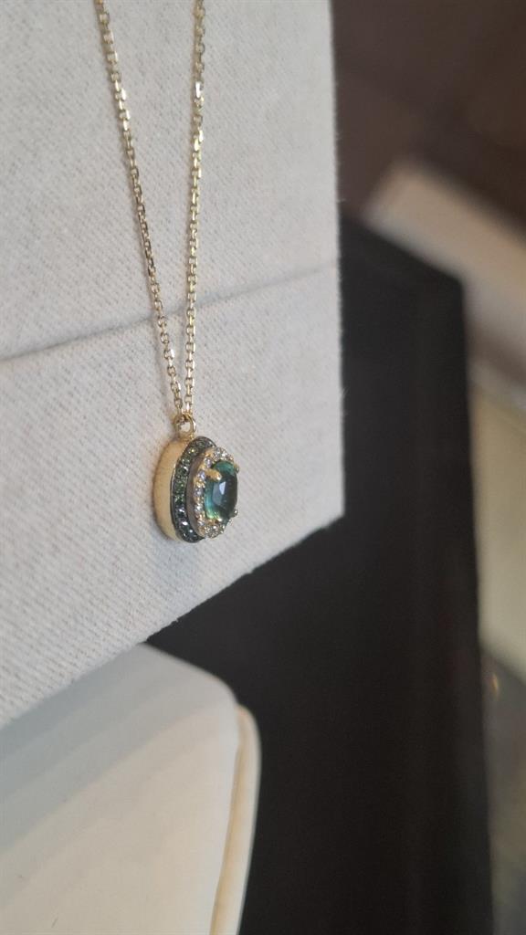 Κολιέ Κ18 με Σμαράγδι & Διαμάντια